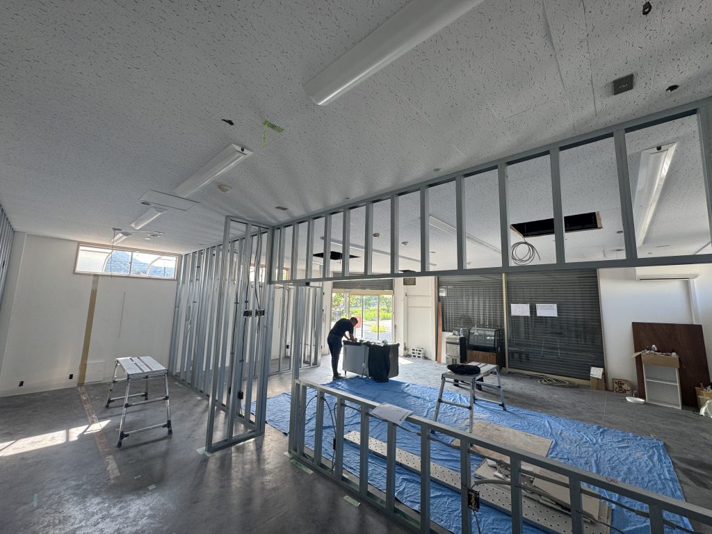 店舗工事中です。 壁下地を設置して、今からは配線と配管の作業を行います。 【担当:馬杉】