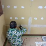 クロスを貼るのに伴い、パテをしています。【担当:村田】