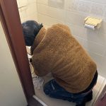 トイレ交換工事中です。 古いトイレの解体を行なっています。 【担当:馬杉】