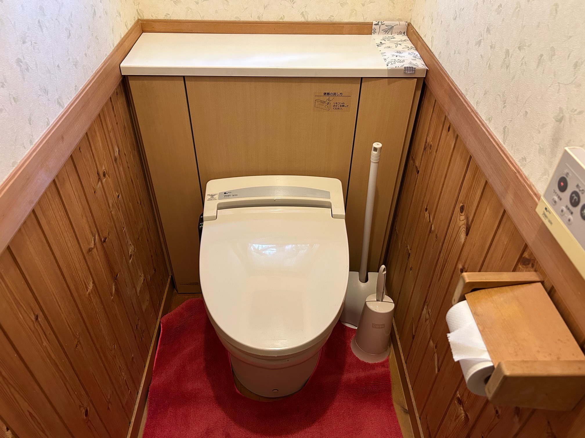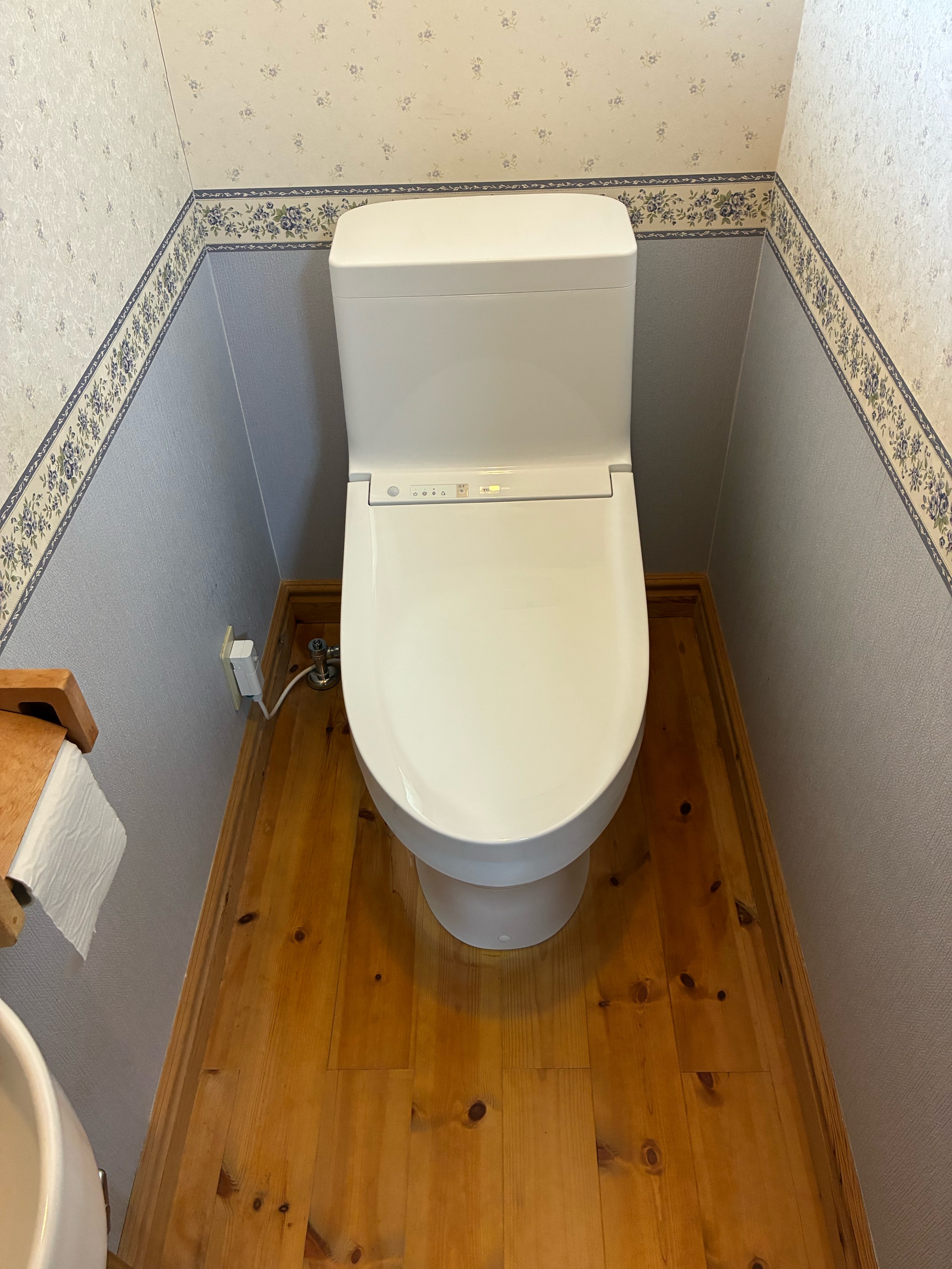 以前工事のご依頼をいただき、リピートのお客様です。 1階と2階のトイレの交換。 1階は今と同じようなキャビネット付きのトイレをご希望されました。